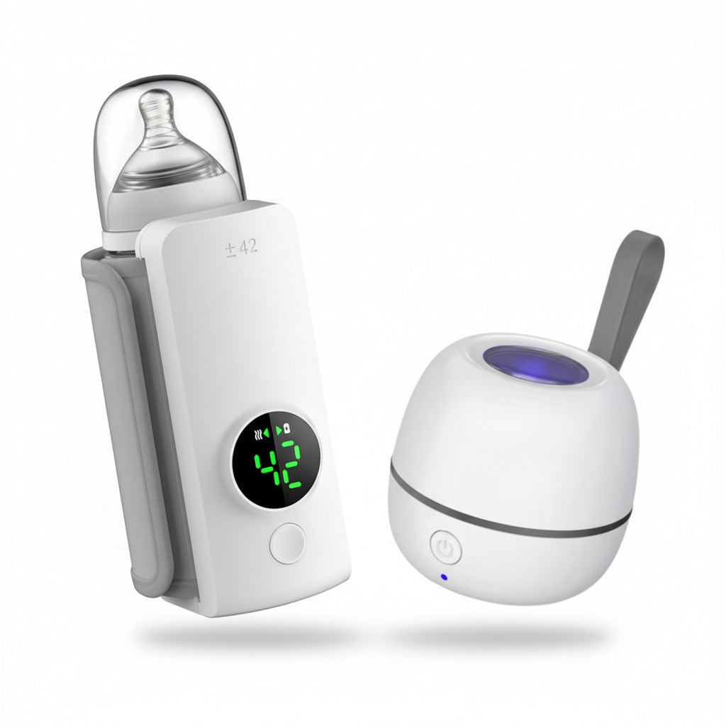 Latte caldo e ciuccio sterilizzato. Un duo perfetto in un kit super compatto da viaggio.